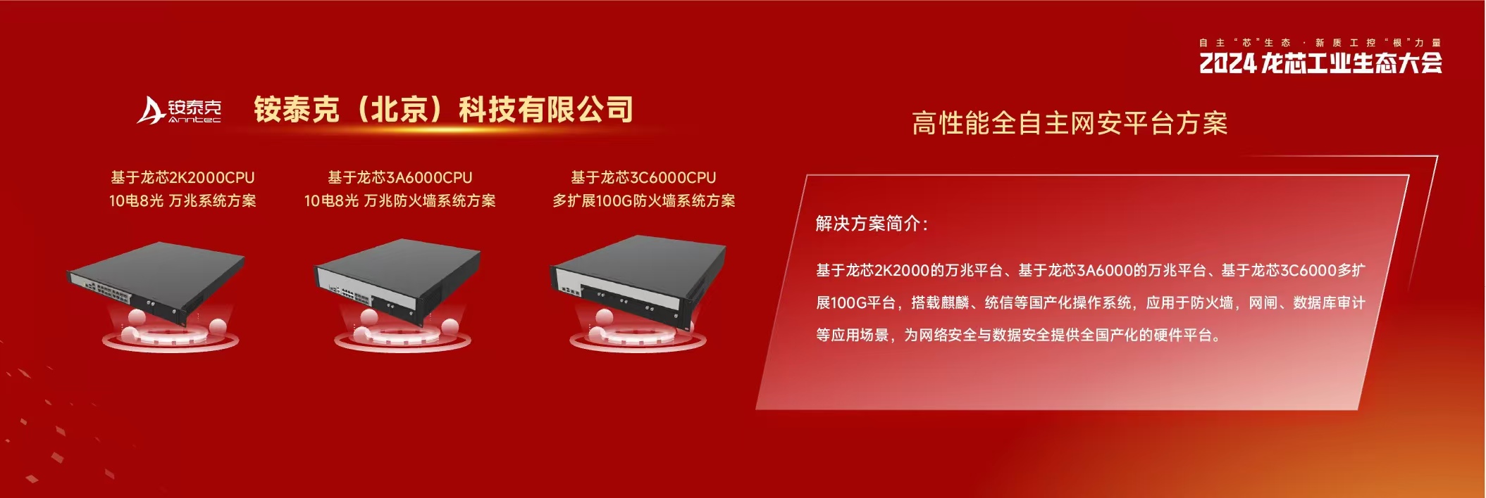 龍芯工業(yè)生態(tài)大會的召開,不僅為國產(chǎn)芯片產(chǎn)業(yè)提供了一個展示和交流的平臺,更為銨泰克科技等創(chuàng)新型企業(yè)提供了更多的發(fā)展機(jī)遇。未來,銨泰克科技將繼續(xù)秉承“創(chuàng)新、協(xié)作、包容、共享”的理念,致力于研發(fā)更多創(chuàng)新型的網(wǎng)絡(luò)安全硬件平臺,為國產(chǎn)化進(jìn)程和網(wǎng)絡(luò)安全事業(yè)貢獻(xiàn)更多的力量。